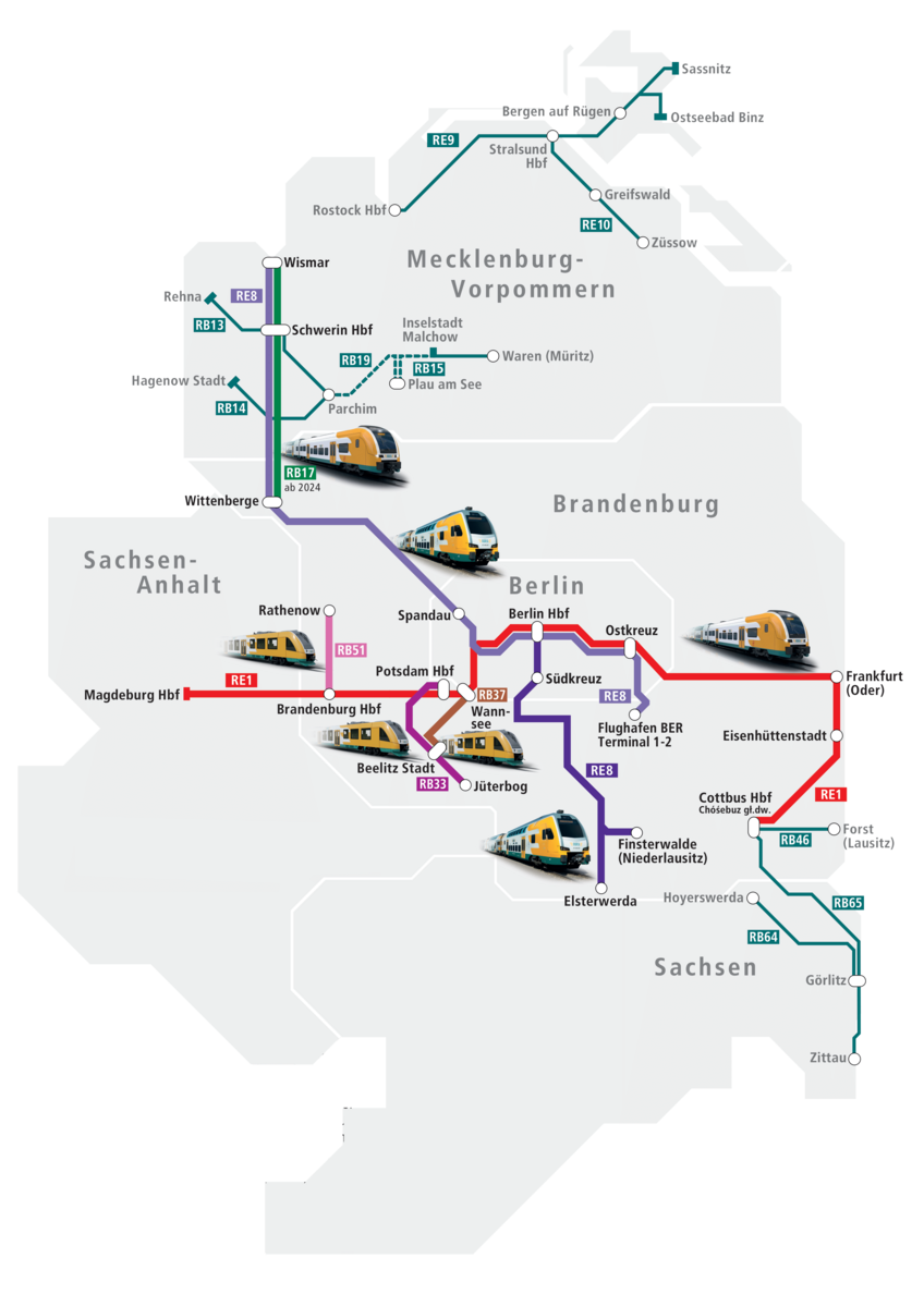 Ein wahrer Ausflugszug ist der RE8, der alle zwei Stunden zwischen der Ostseeperle Wismar, Wittenberge und dem Flughafen BER verkehrt. Am Wochenende und zu Pendlerzeiten freuen sich Fahrgäste im komplett modernisierten Stadler KISS über das Catering- und Platzangebot, neu gestaltete Sanitäranlagen und einen stabilen Internetzugang für gute Unterhaltung.